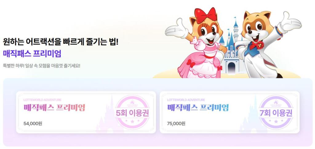대기 시간 없이 어트랙션을 우선 탑승할 수 있는 매직패스 프리미엄은 별도의 추가 비용이 발생하는 선택 옵션이라 할 수 있습니다.