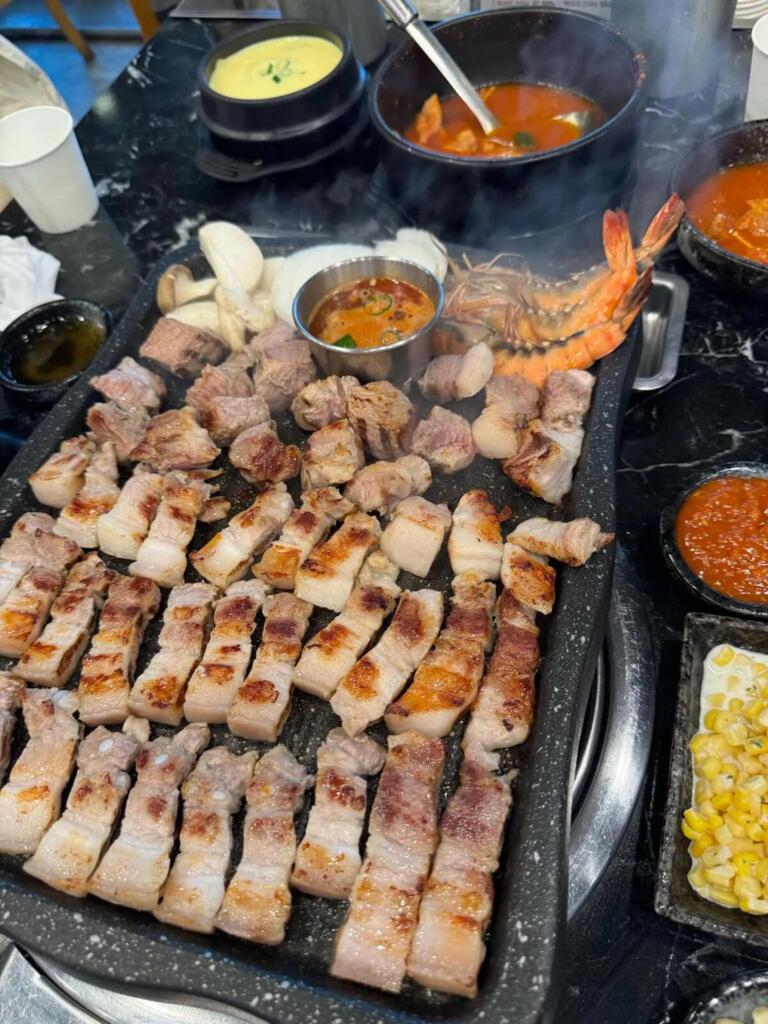 함덕 해수욕장에서 수영을 마친 후 든든하게 배를 채우기 좋은 곳으로, 안성 주물 불판에 구워 겉바속촉 식감이 일품었구요.