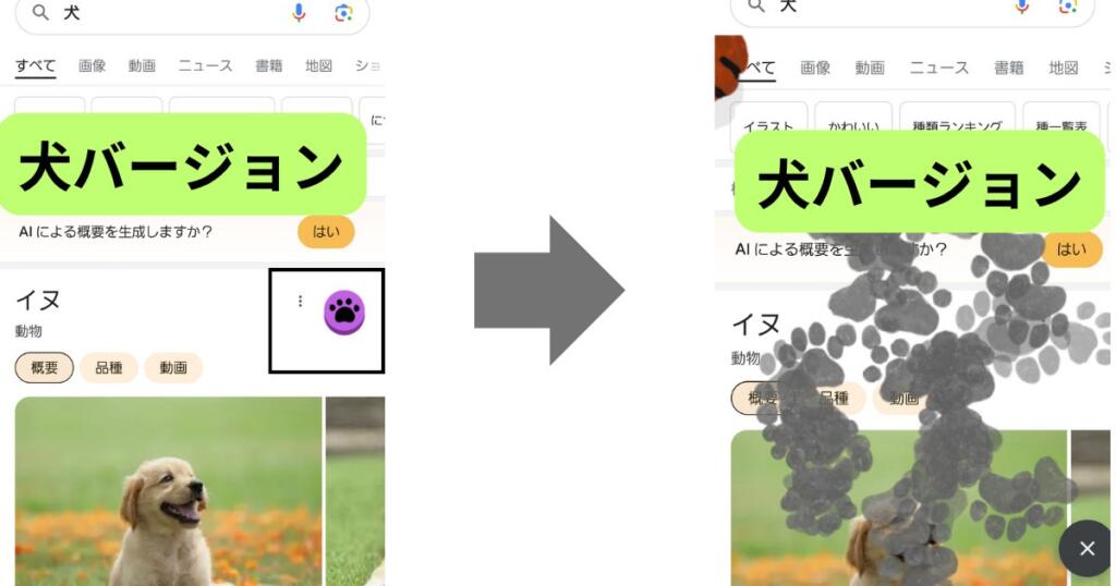이것만으로 숨겨진 명령어를 나타나게 할 조건이 갖춰집니다. 그 후에는, 움직이는 아이콘을 스마트폰이라면 손가락으로 화면에 탭. 컴퓨터라면 클릭하면 검색한 키워드로 화면을 칠할 수 있게 됩니다.・・・②