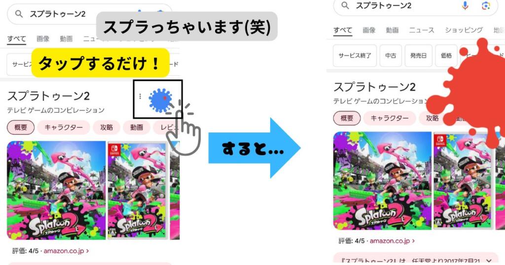 「토마토 축제」와 「스플래툰」의 숨겨진 명령어는 구글 검색창에 「토마토 축제」 또는「스플래툰」이라고 입력하기만 하면 가능한 비밀스러운 조작(구글 숨겨진 명령어)입니다.