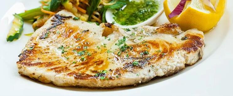 신선한 황새치를 레몬과 오레가노로 양념하여 굽거나 튀겨내는데 지중해에서 갓 잡은 싱싱한 황새치의 담백한 맛을 살리는 것이 핵심입니다.